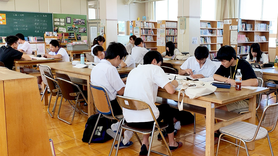 校長先生から、3年生に向けて激励のお言葉をいただきました。図書室にもエアコンが設置されたことで、快適な環境で勉強に集中できる環境が整っています。
